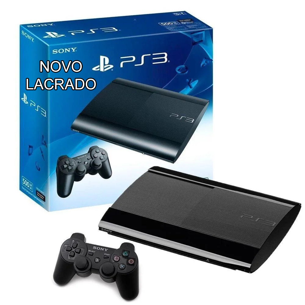 PlayStation 3 Super Slim 500GB completamente novo e lacrado, um verdadeiro item de colecionador. Este modelo não é mais fabricado há anos, tornando-se cada vez mais difícil de encontrar em perfeito estado.
